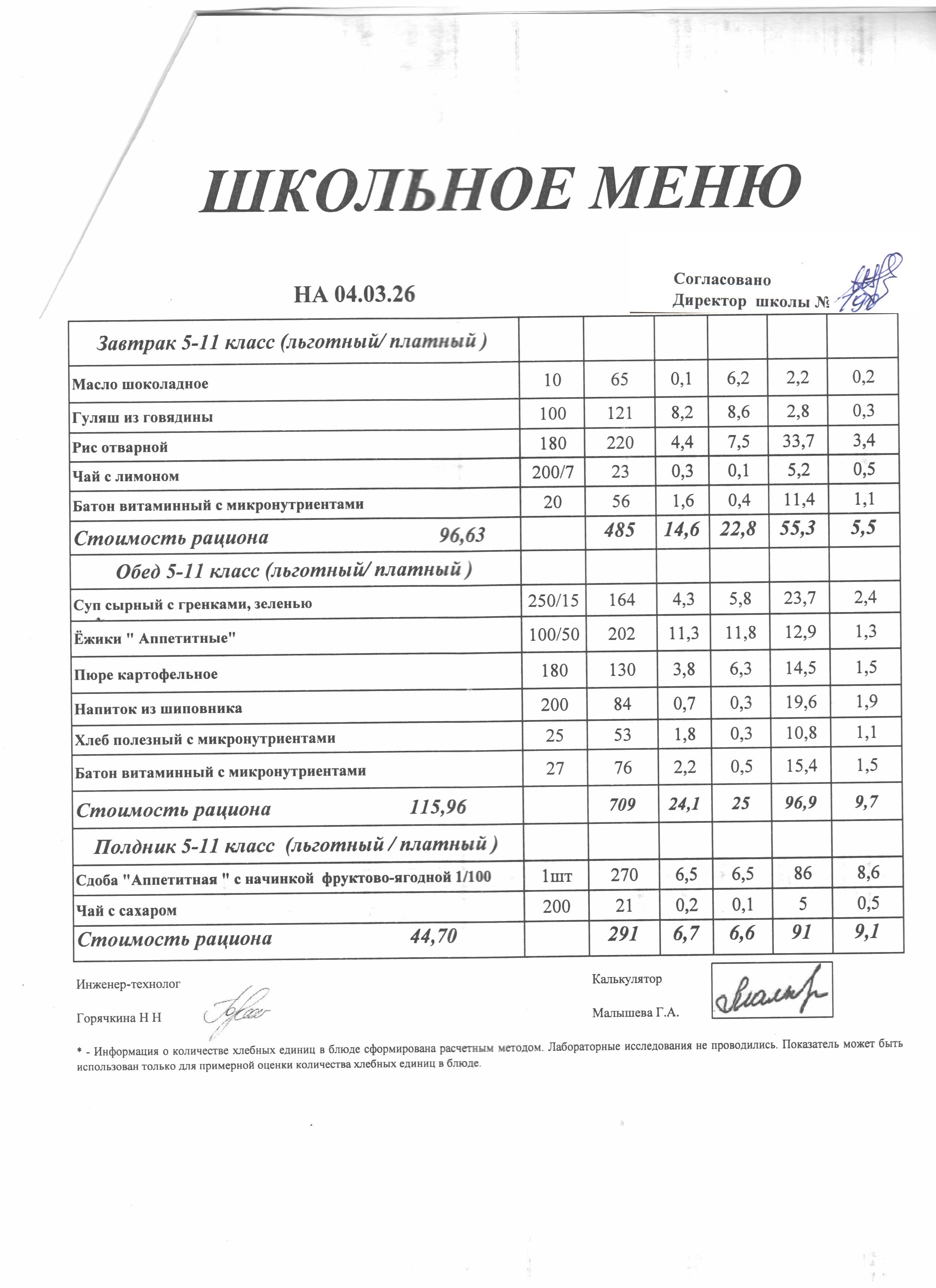 Главная » Сведения об образовательной организации » Организация питания в образовательной организации » МЕНЮ ежедневного горячего питания