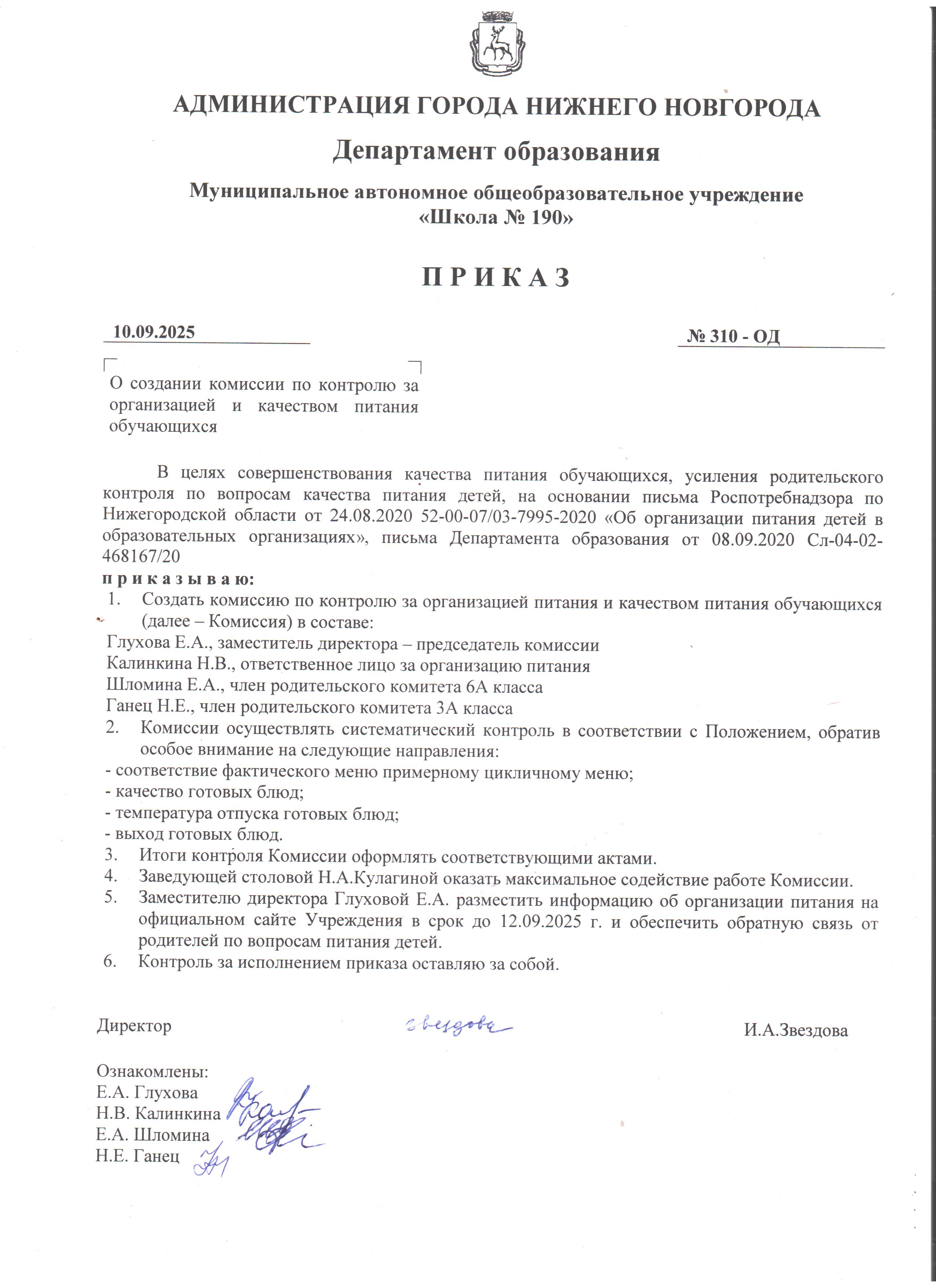 На основании письма Департамента образования администрации Нижнего Новгорода от 01.03.2021 № Сл-04-02-119874/21(ф) в школе организован родительский контроль за организацией горячего питания детей.